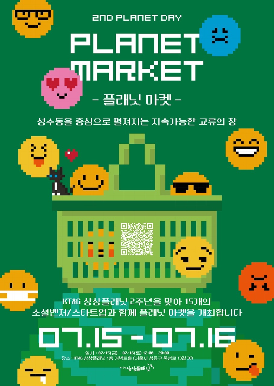 news [행사] KT&G 상상플래닛 개관 2주년 '플래닛 마켓' 개최 (7/15-16) by 8번출구 2022. 7. 13. 15개의 소셜벤처, 스타트업, 로컬 브랜드와 함께 하는 지속가능한 교류의 장 <플래닛 마켓> 일시: 2022년 7월 15일(금)~16일(토) 오후 12시~오후 8시 장소: KT&G 상상플래닛 1층 커넥트홀 (서울시 성동구 뚝섬로13길 38) 참가비: 무료 상세 안내 페이지(노션): https://bit.ly/3nRveuN*포스터에 있는 QR코드를 통해서도 확인 가능합니다 :) 공유하기 게시글 관리 임팩트얼라이언스 Impact Alliance 관련글 [모집] 2022 글로벌 솔루션랩 <2부. 복지기술을 통한 사회적 고립 대응> 웨비나 [모집] 2022년 소셜벤처 국내 품평 박람회 참가 지원사업 [행사] 제4회 사회적경제 박람회(7/8-10) [모집] 2022년 소셜벤처 크라우드펀딩 지원사업 (~7/8) 댓글