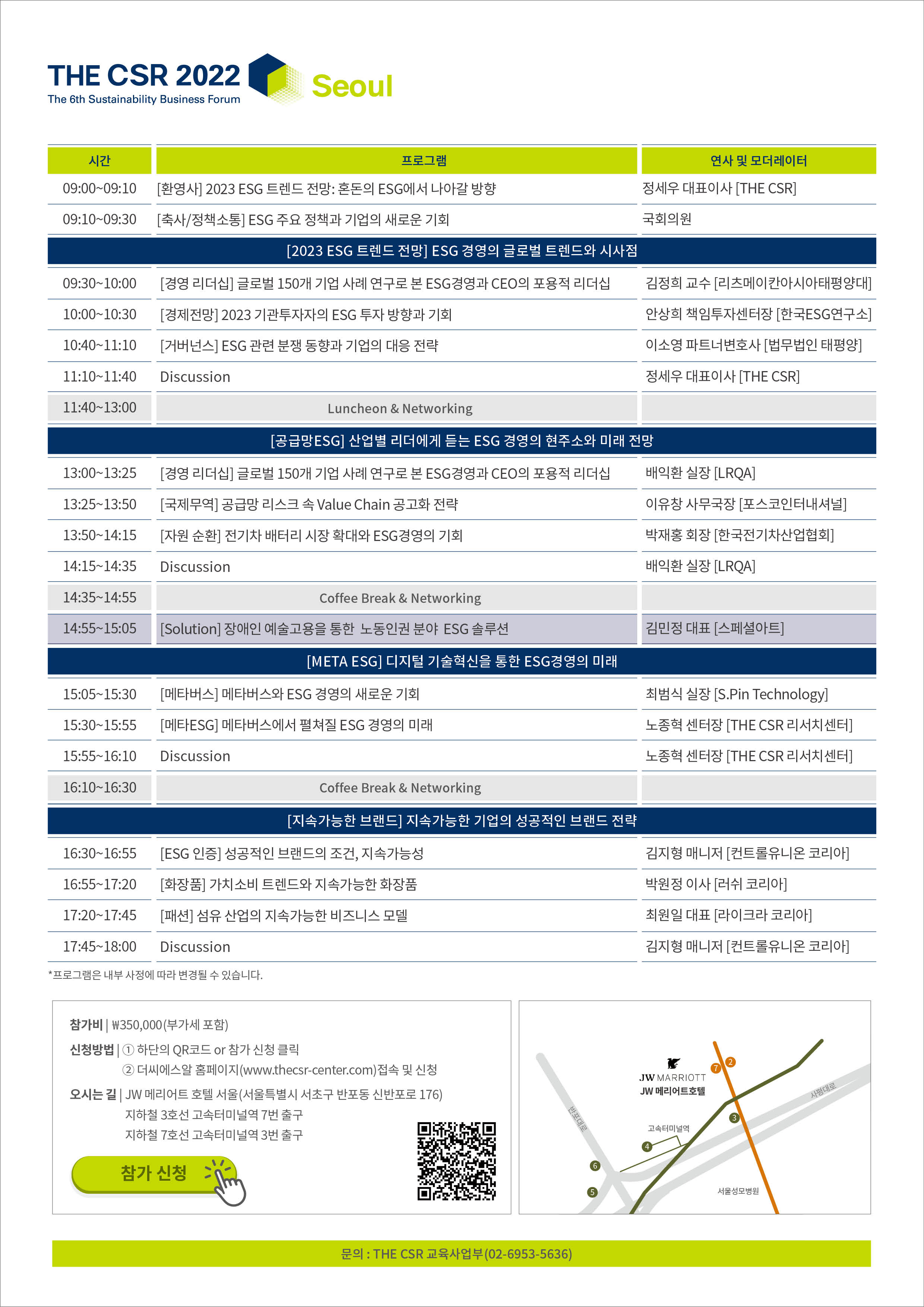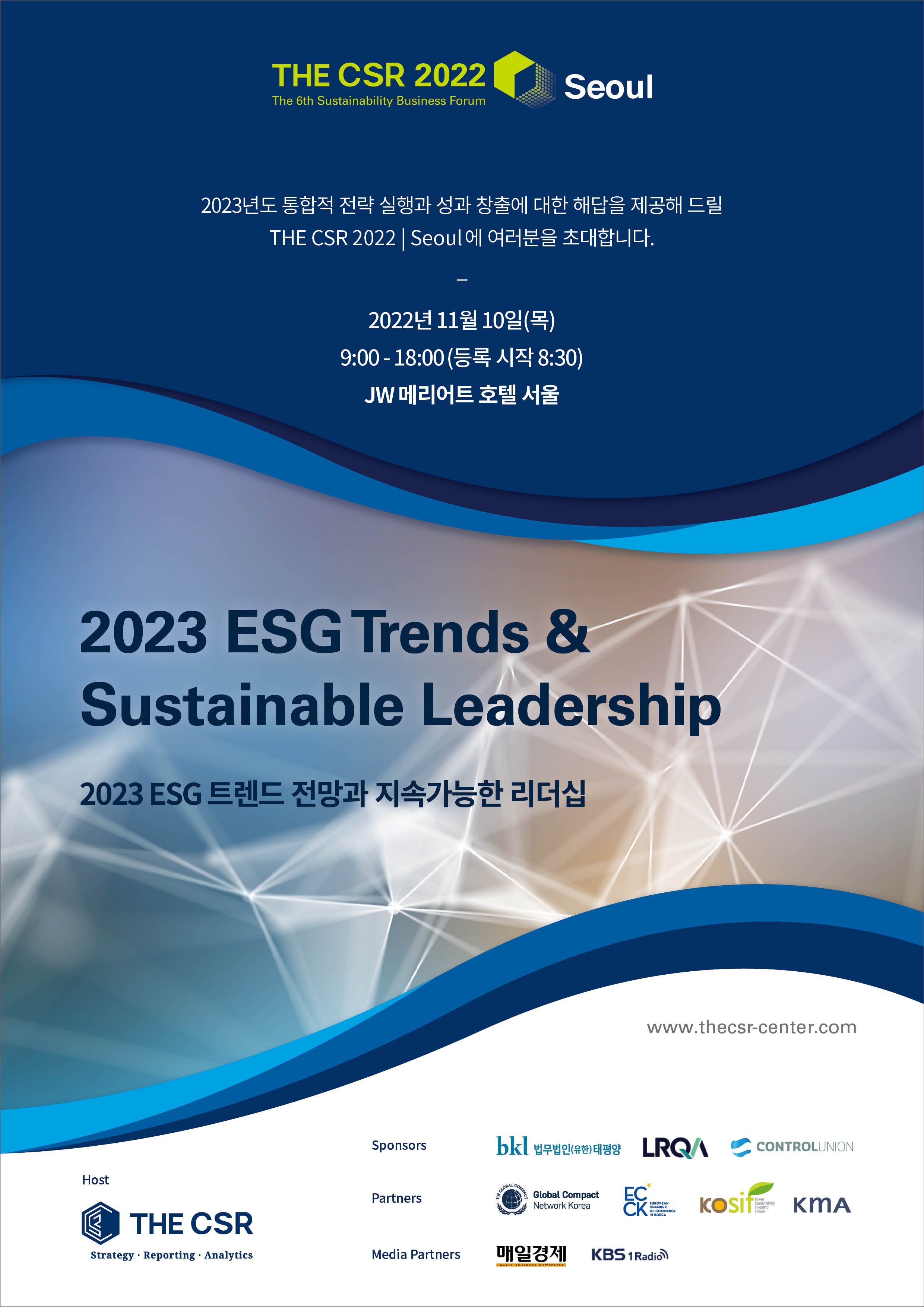 기업의 사회적 책임(Corporate Social Responsibility) 경영 전략 분야에서 대한민국 최고의 ESG 경영 통합 컨설팅 名家로 거듭나고 있는 (주) THE CSR 이 올해로 6년 차를 맞이하는 제6회 지속가능경영 비즈니스 포럼 『THE CSR 2022 | Seoul』 을 개최합니다.
