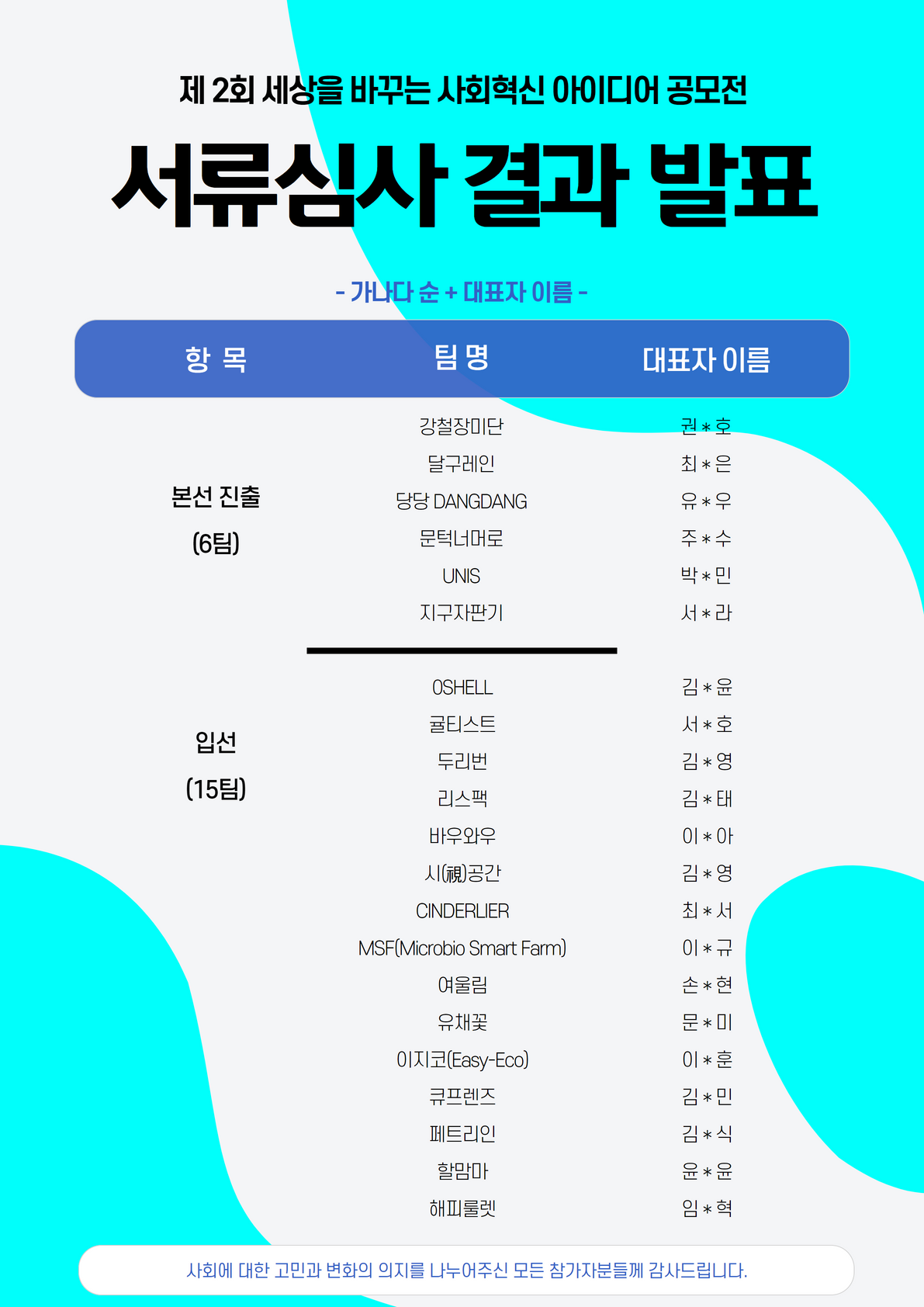 사회혁신 아이디어 공모전에 지원해주셔서 고맙습니다.