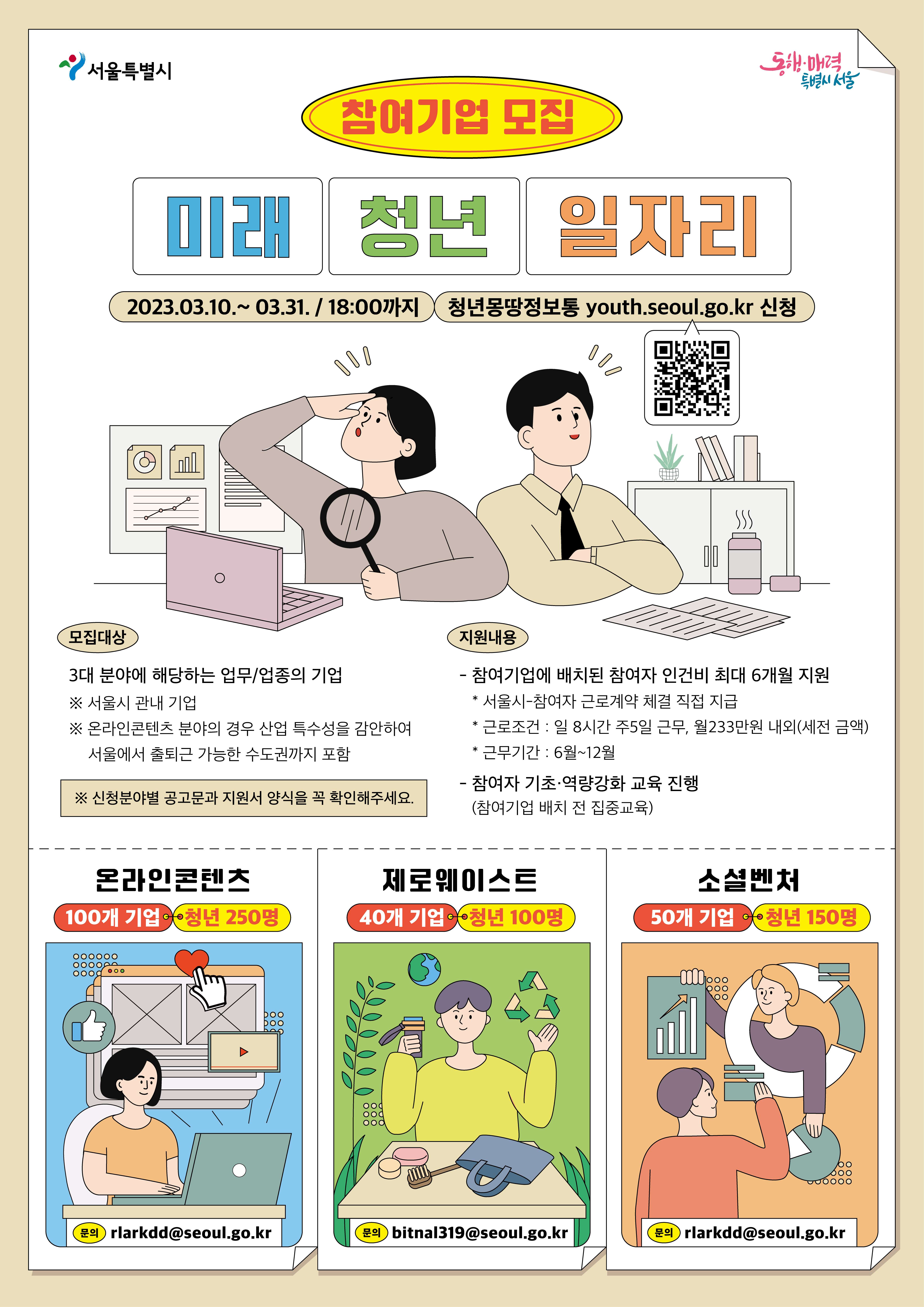 - 온라인콘텐츠, 소셜벤처 분야 (2133-4307, rlarkdd@seoul.go.kr)