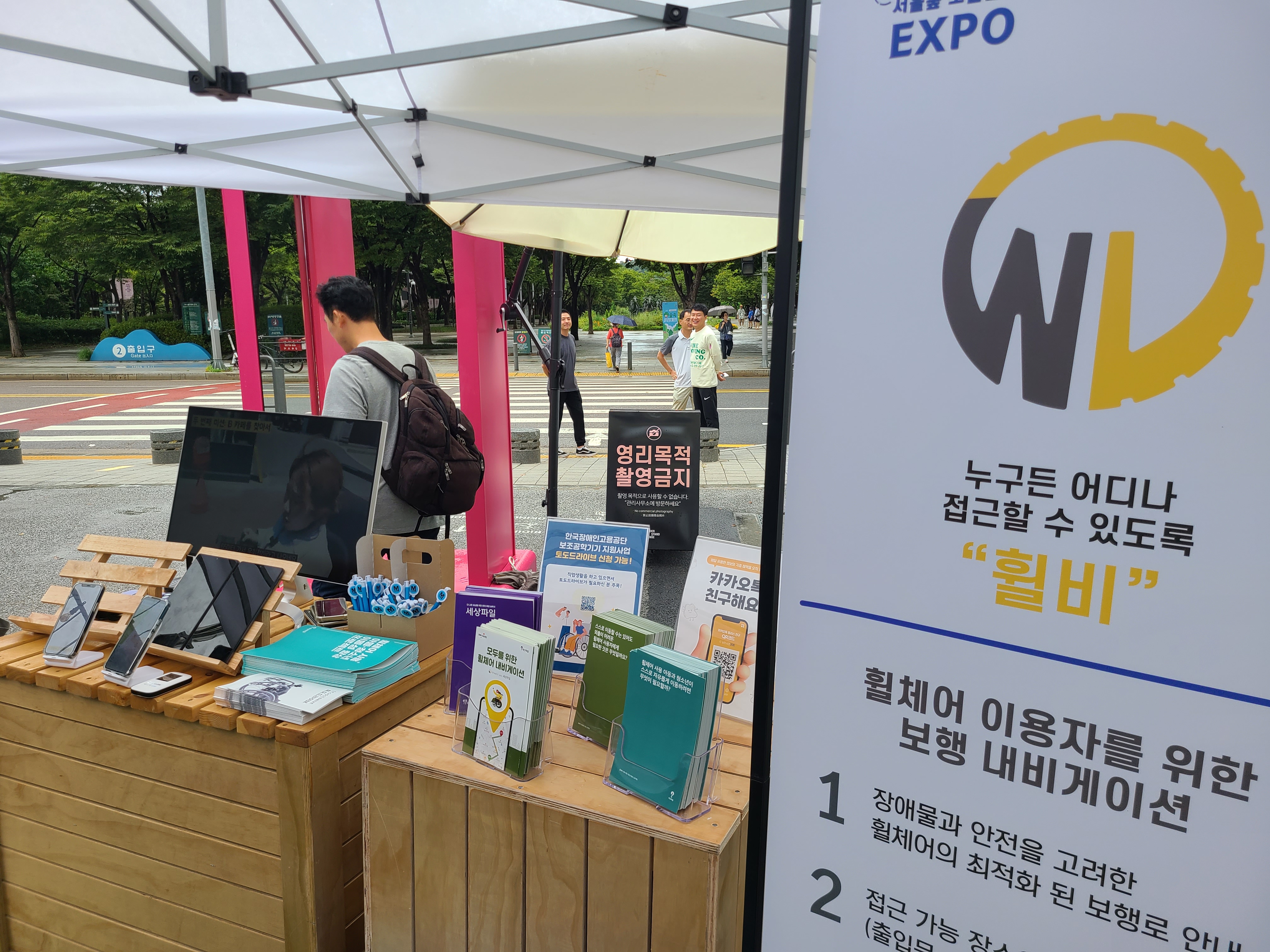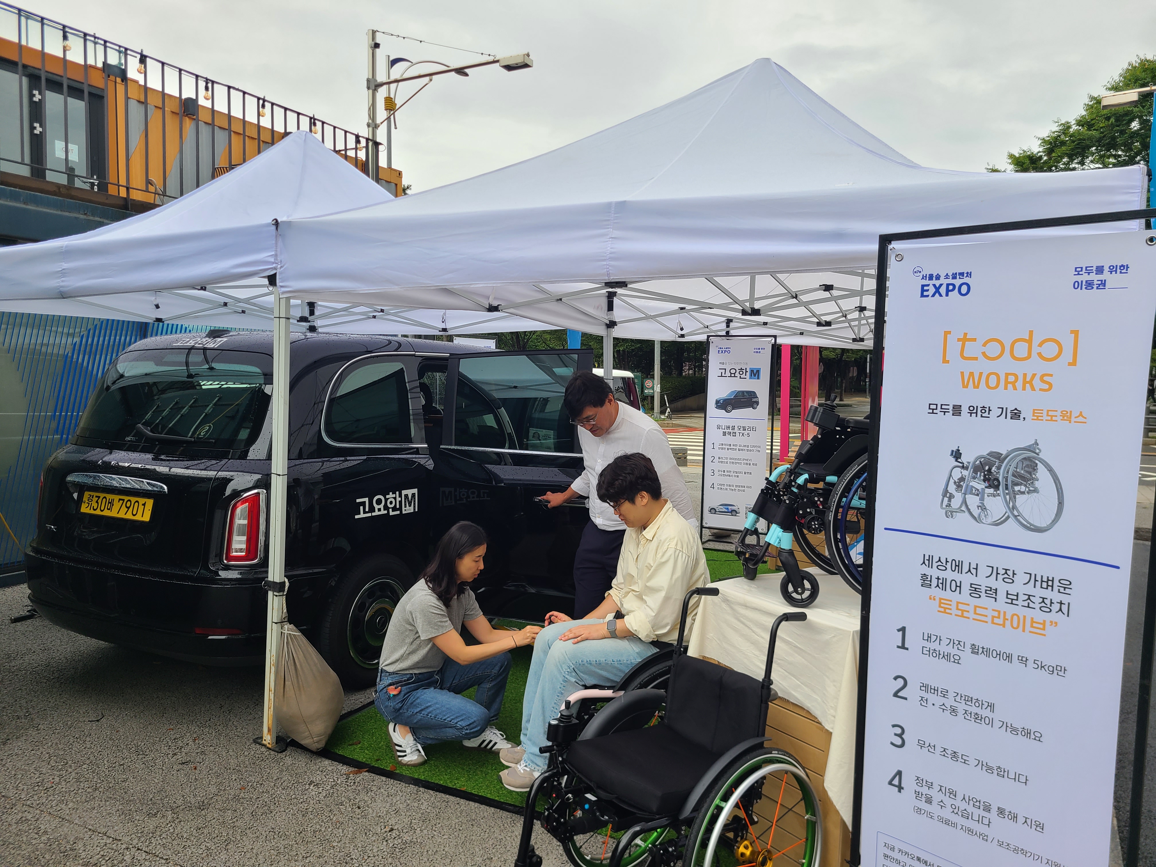 현장을 찾은 시민들은 동력보조장치가 달린 토도웍스 휠체어를 타고 부스를 구경하며 바로 블랙캡 택시에 탑승하기도 하였고 휠체어 전용 내비게이션인 휠비로 턱과 경사로가 없는 길을 찾아보기도 하였습니다.