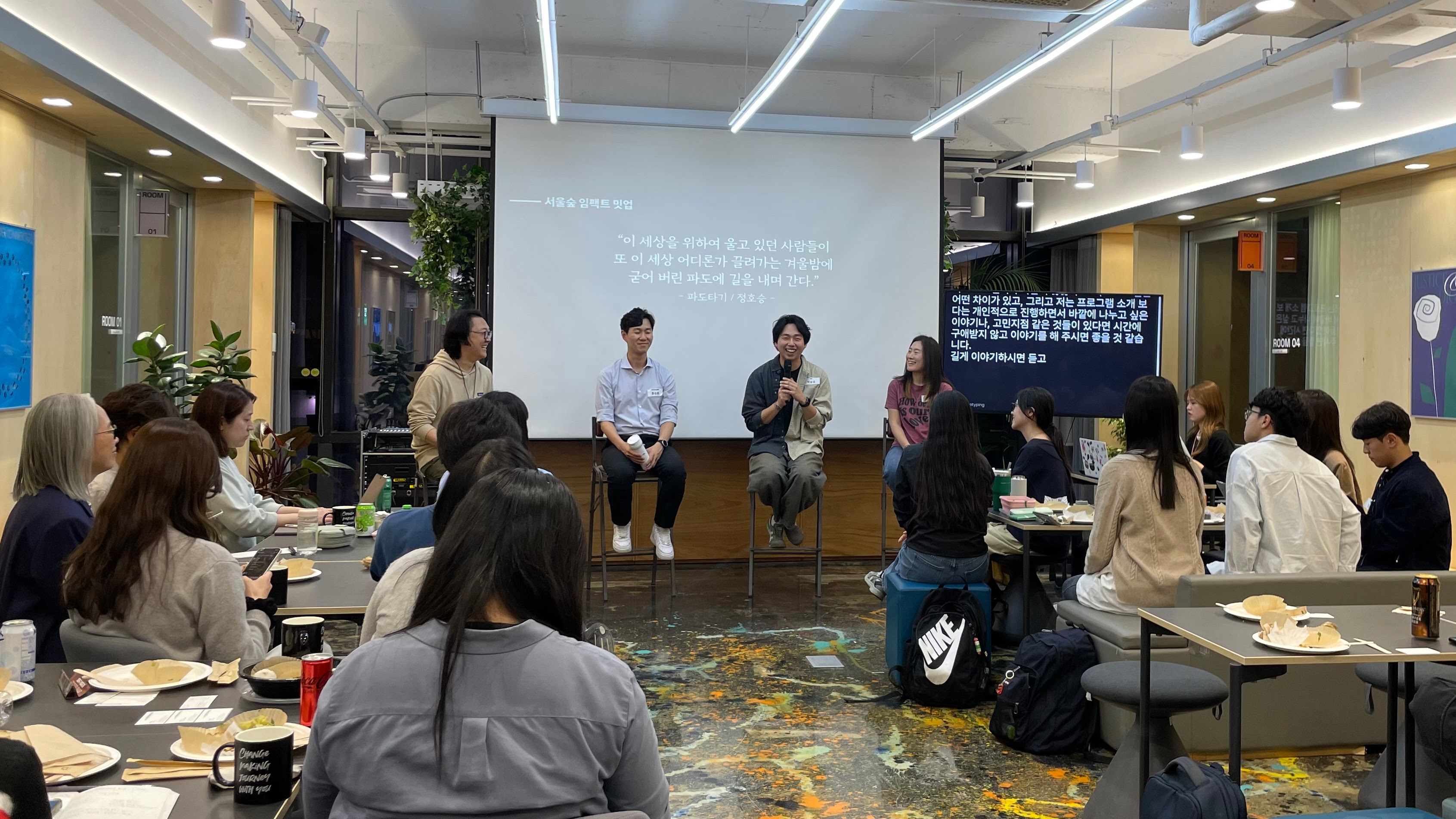 이번 밋업은 특별히 케이터링과 함께 네트워킹 시간을 먼저 진행하여 서로에 대한 긴장감을 풀고 이후 세미나를 진행하는 구성으로 운영해, 사회/환경 문제를 해결하기 위해 현장에서 고군분투하는 조직들이 좀 더 진솔한 대화를 나눌 수 있도록 하였습니다🙂