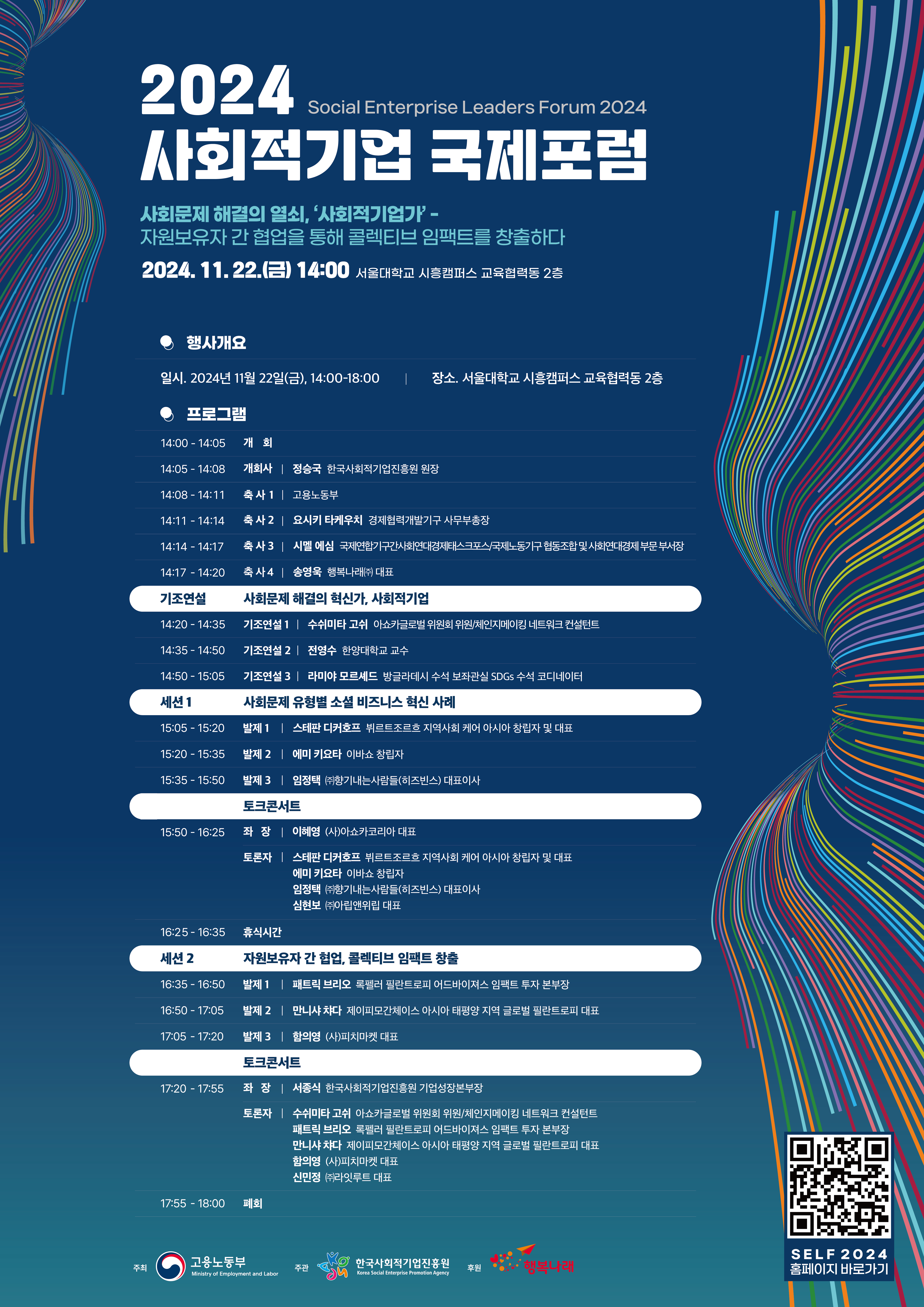 고용노동부가 주최하고 한국사회적기업진흥원이 주관하는 사회적기업 국제포럼은 2012년부터 매년 개최된 국제행사입니다.