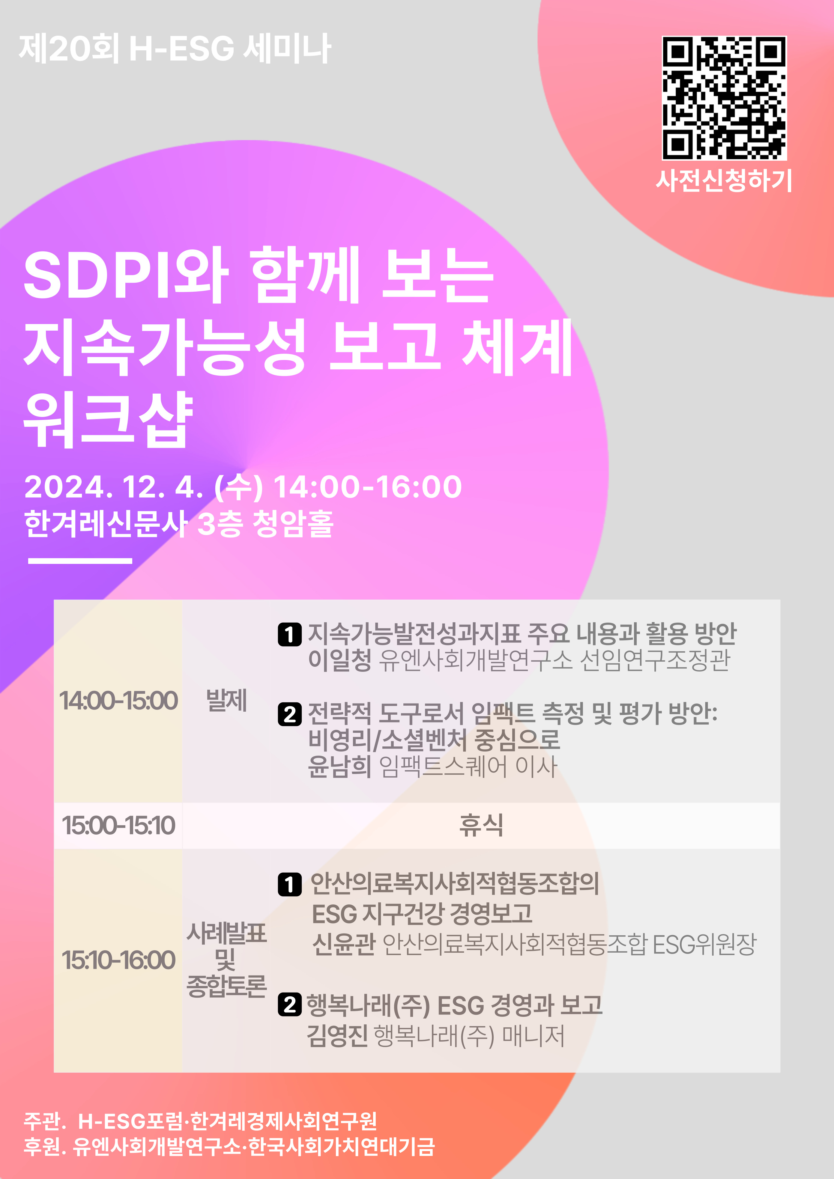 - 발제 및 사례발표: 이일청(유엔사회개발연구소 선임연구조정관), 윤남희(임팩트스퀘어 이사),