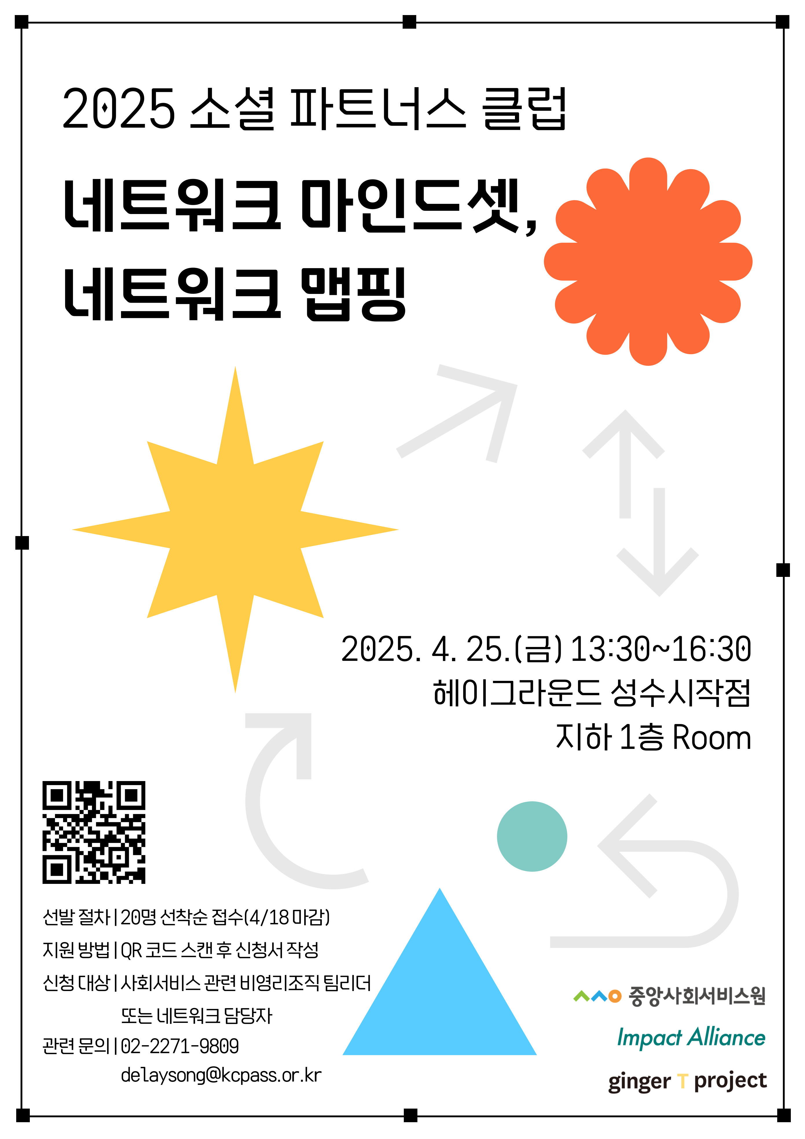 중앙사회서비스원에서 2025년 소셜 파트너스 클럽 1회차 참가자를 모집합니다.