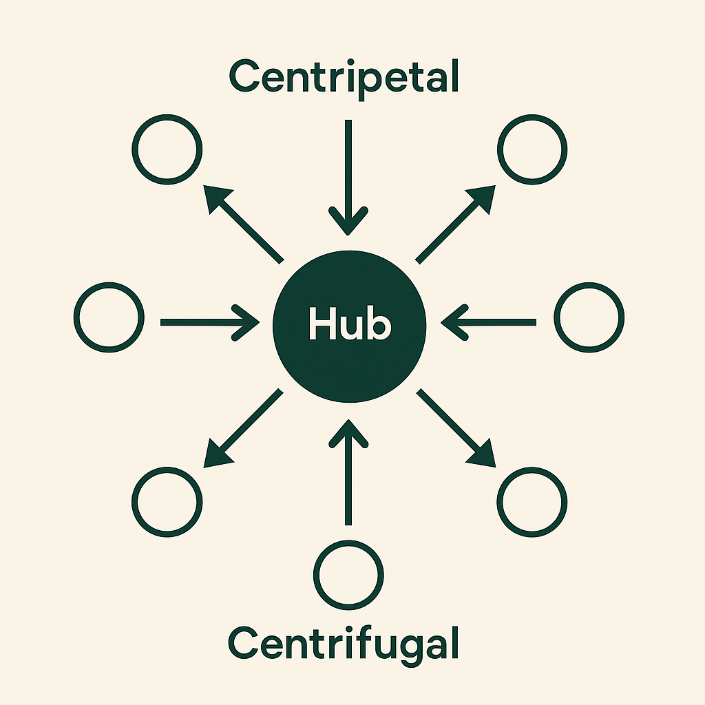 🔴 Centrifugal Force (원심력) → 밖으로 퍼져나가는 힘