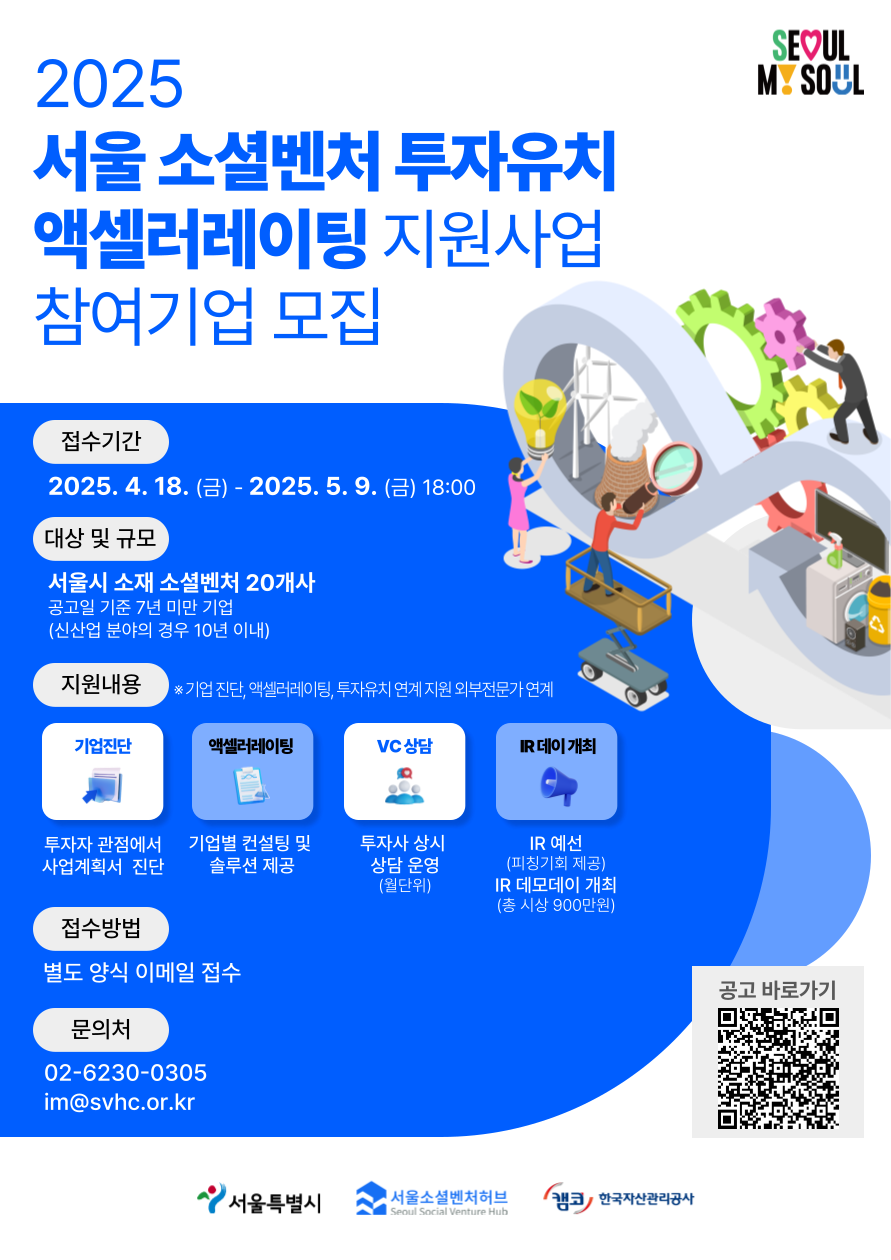 - 사 업 명 : 2025년 서울 소셜벤처 투자유치 엑셀러레이팅 지원 사업