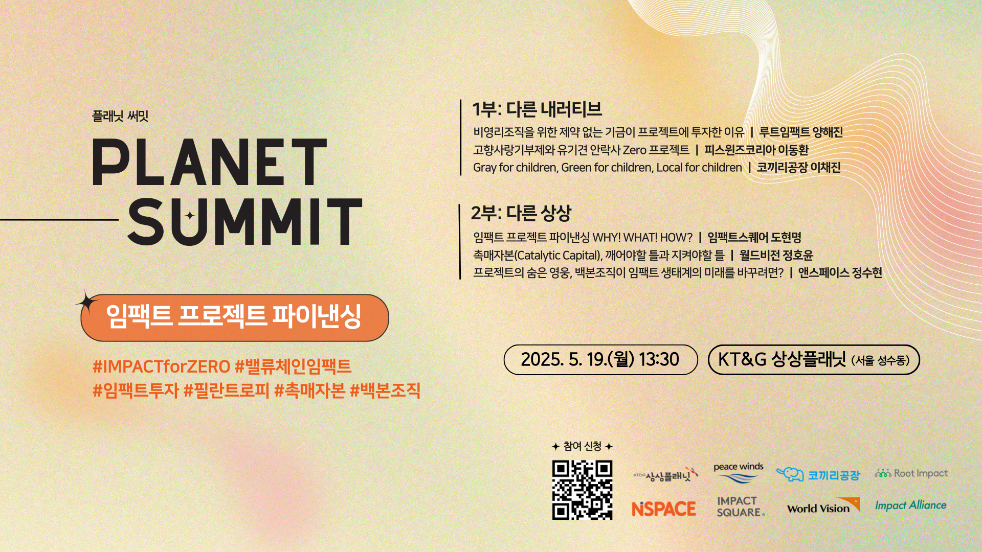 2025년 5월 19일, 서울 성수동의 KT&G상상플래닛에서 '플래닛 써밋 : 임팩트 프로젝트 파이낸싱'이 진행되었습니다.