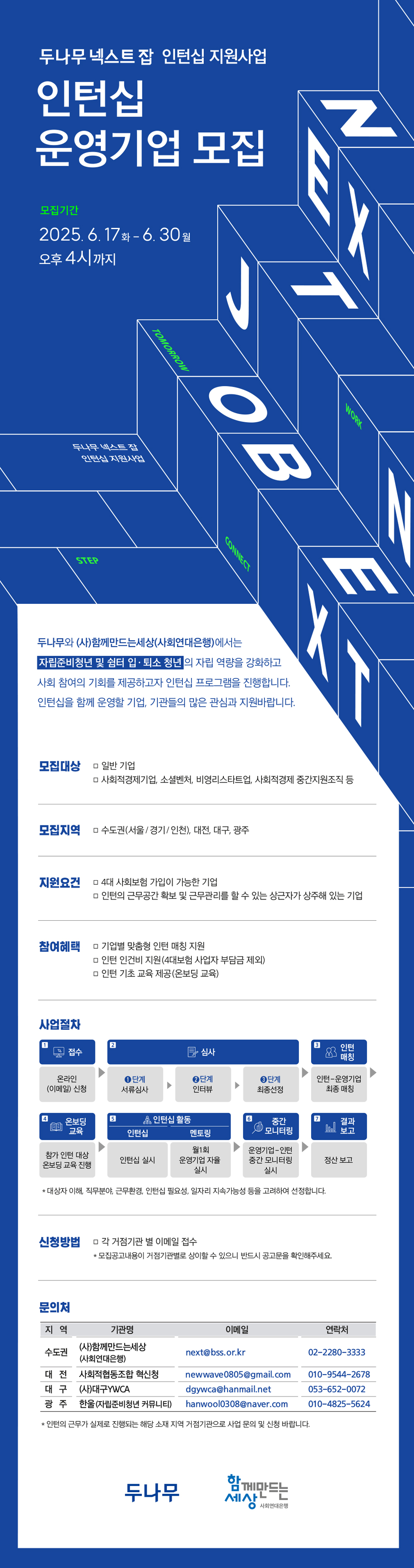 [모집] 두나무 넥스트 잡 인턴십 운영기업 모집 - (사)함께만드는세상/사회연대은행