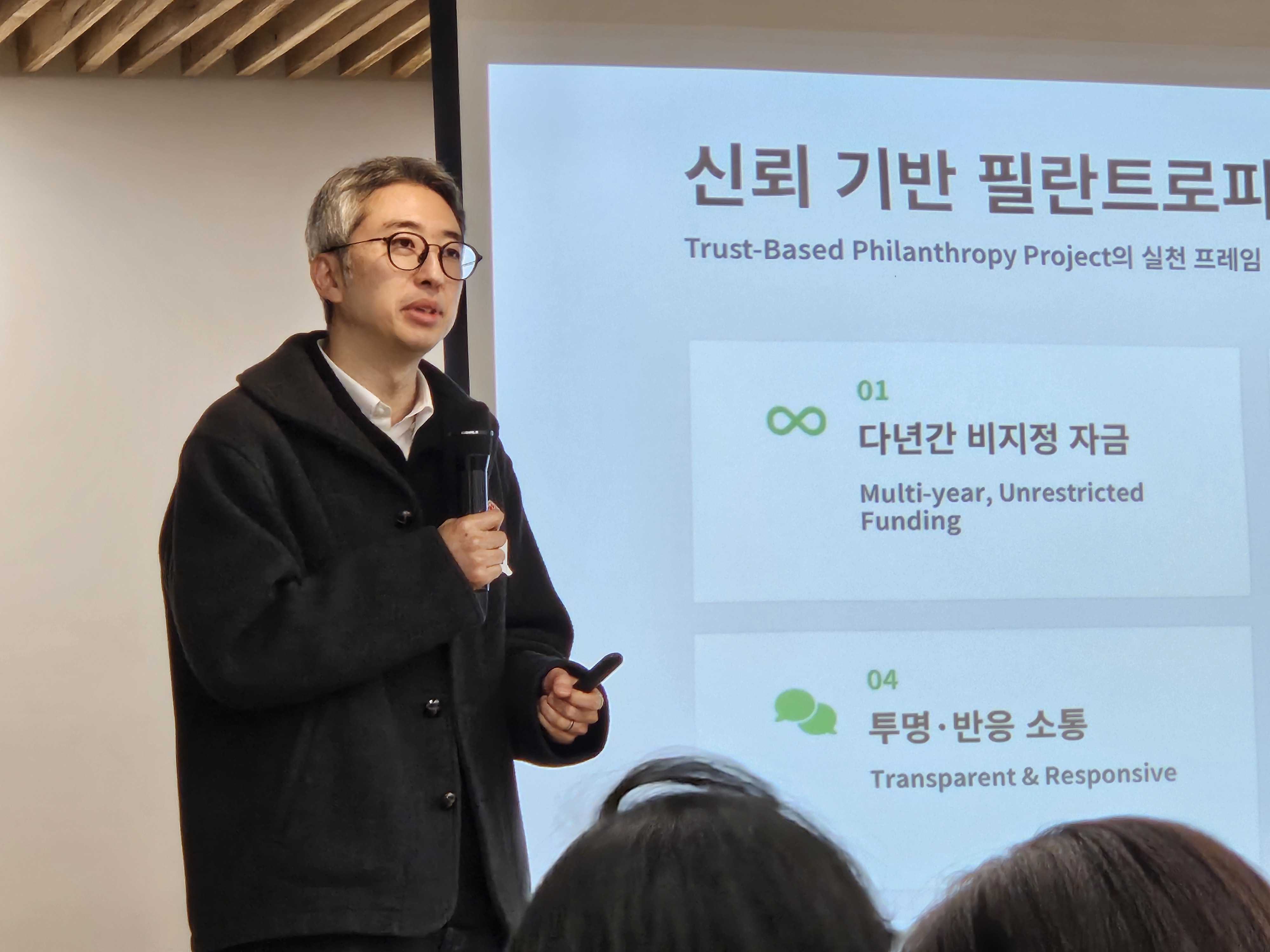 허 대표는 Trust-Based Philanthropy 운동이 제시하는 여섯 가지 행동 지침을 소개했다. 다년간 비지정 자금 지원, 펀더의 적극적 학습, 간소한 지원서류, 투명한 소통, 피드백 수렴, 비재무적 지원이다. 그리고 한 가지를 덧붙였다. "금전적 자본은 쓰면 없어지지만 신뢰 자본은 쓸수록 축적된다."