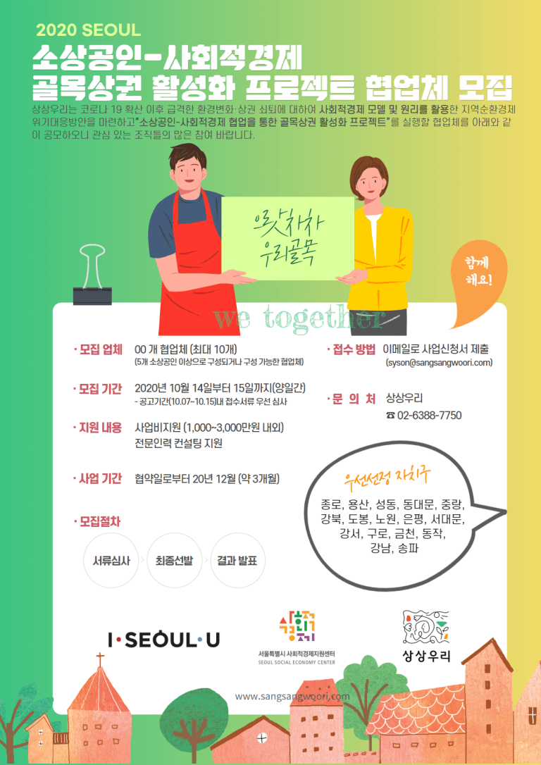 □ 사업명 : 2020년 소상공인-사회적경제 협업을 통한 골목상권 활성화 프로젝트 실행협업체 모집