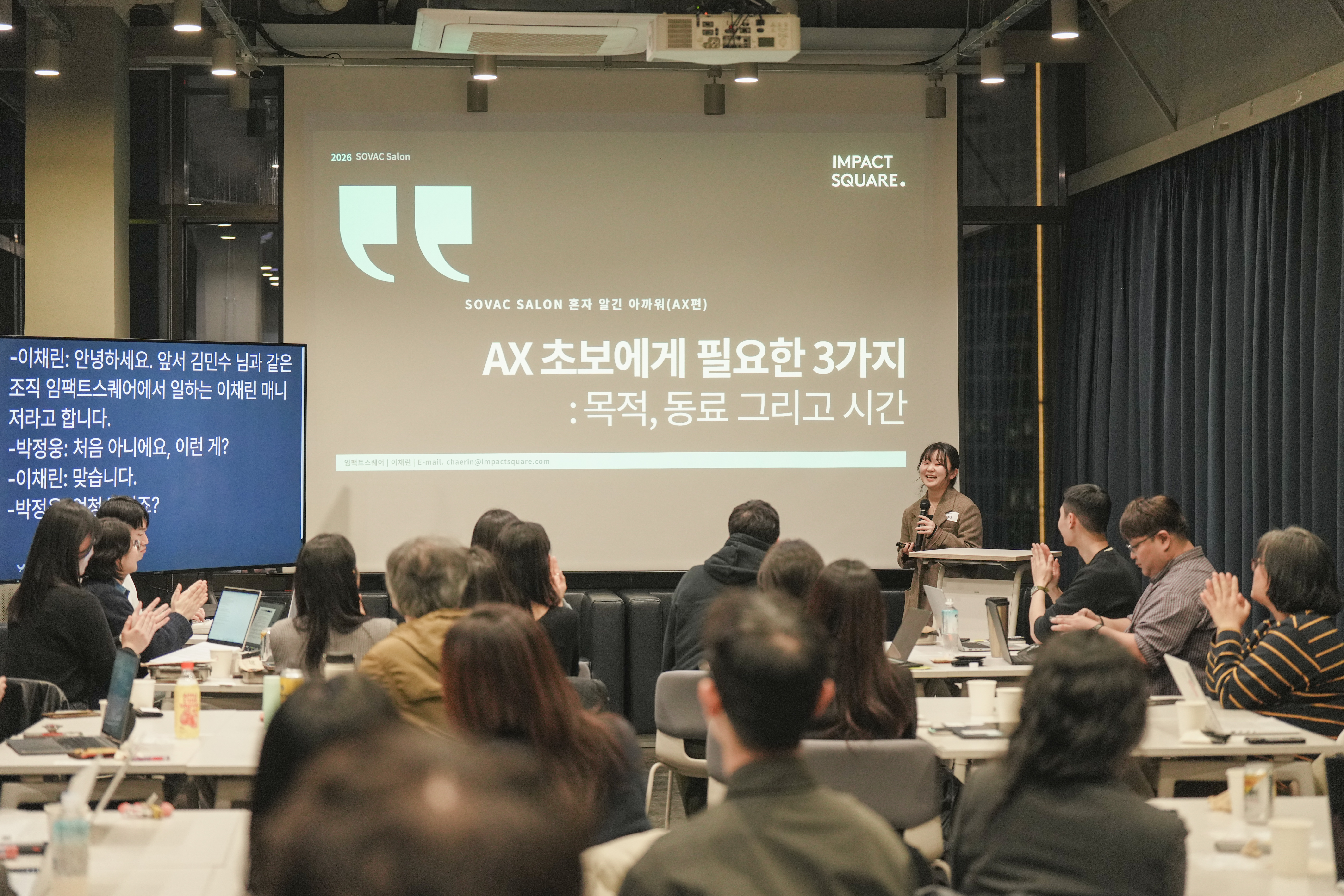 발표 전체를 관통하는 공통점이 하나 있었다. 발제자 모두 "AI에서 출발해 일로 간 것이 아니라, 일에서 출발해 AI로 갔다"는 것. 진행을 맡은 임팩트얼라이언스 박정웅 팀장은 이 점을 짚으며, AI를 수학처럼 익히려 하지 말고 영어처럼 익혀야 한다고 덧붙였다. 가장 높은 산에 오르려면 가장 낮은 곳에서 출발해야 하듯이, 같이 산을 오를 사람 한 명을 찾는 것이 시작점이라는 이야기도 전했다.