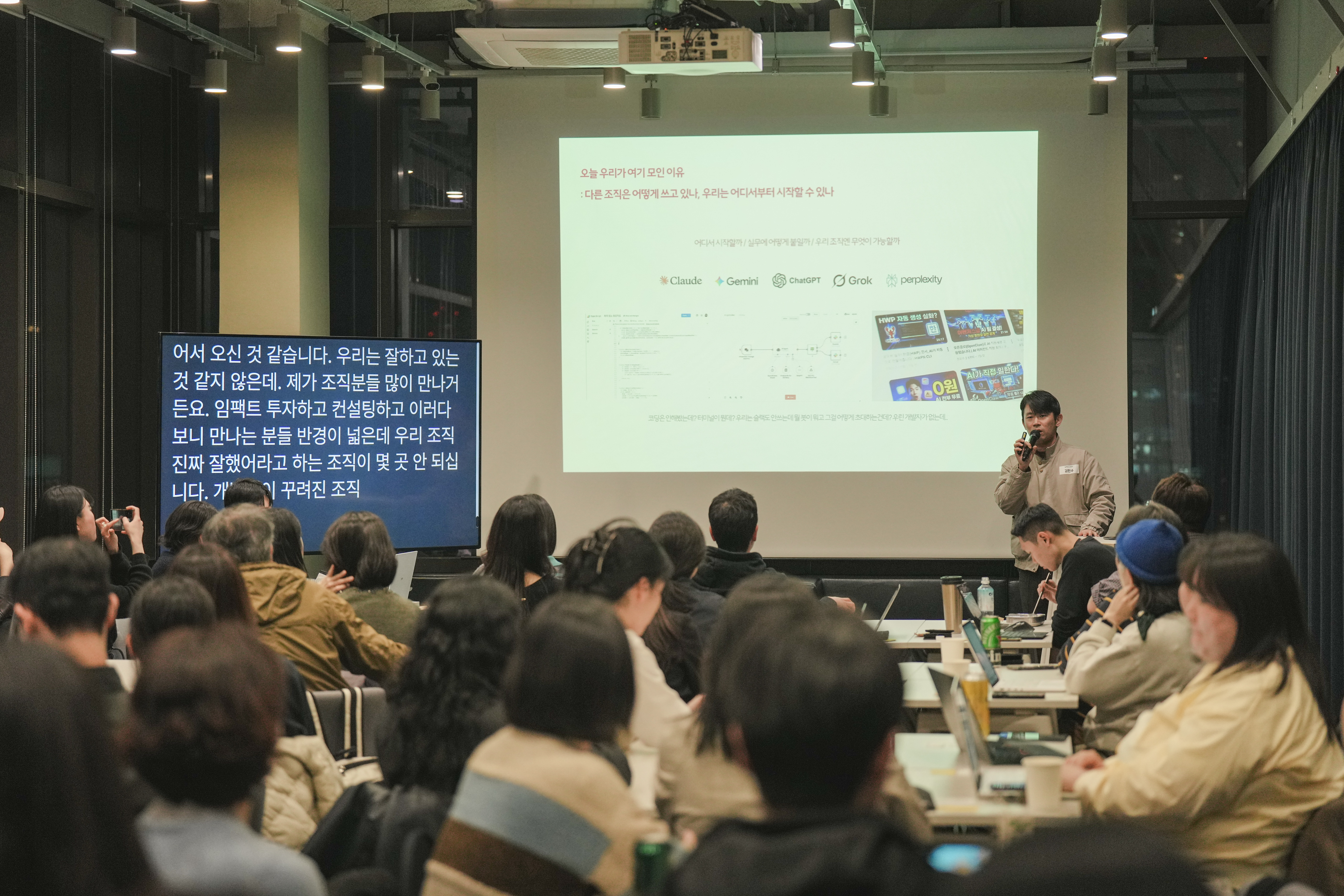 임팩트 생태계 실무자들 사이에서 요즘 자주 도는 질문이 있다. "다른 조직은 AI를 어떻게 쓰고 있어?" 그리고 이 질문 바로 뒤에 따라오는 것. "우리는 어디서부터 시작하면 돼?" 이 질문들이 현장에 모인 이유였고, 이날의 대화는 여기서 출발했다.