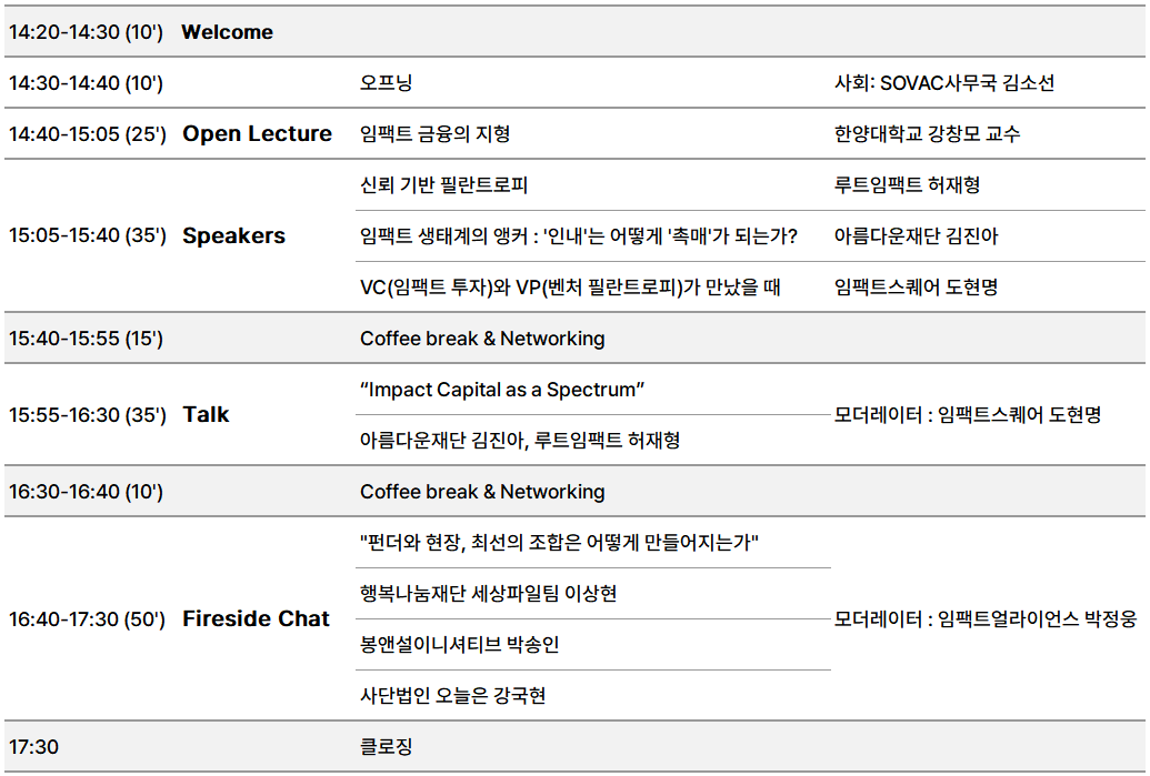 SOVAC Salon X 임팩트 써밋 "Capital Orchestration for IMPACT"의 더 자세한 이야기는 아래 링크에서 만나보세요!