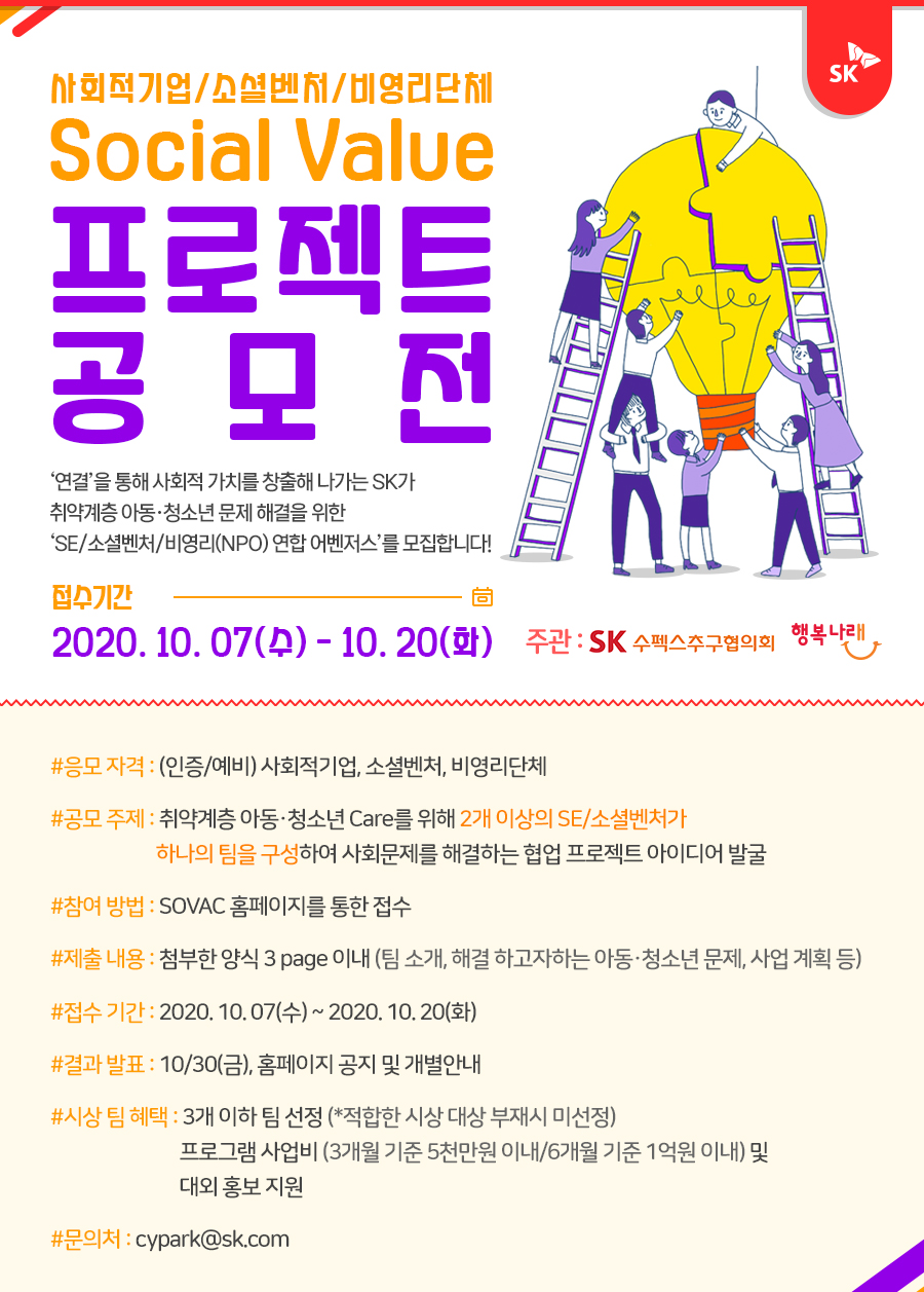 [SK그룹] 사회적기업/소셜벤처/비영리단체 Social Value 프로젝트 공모전 (~10/20)