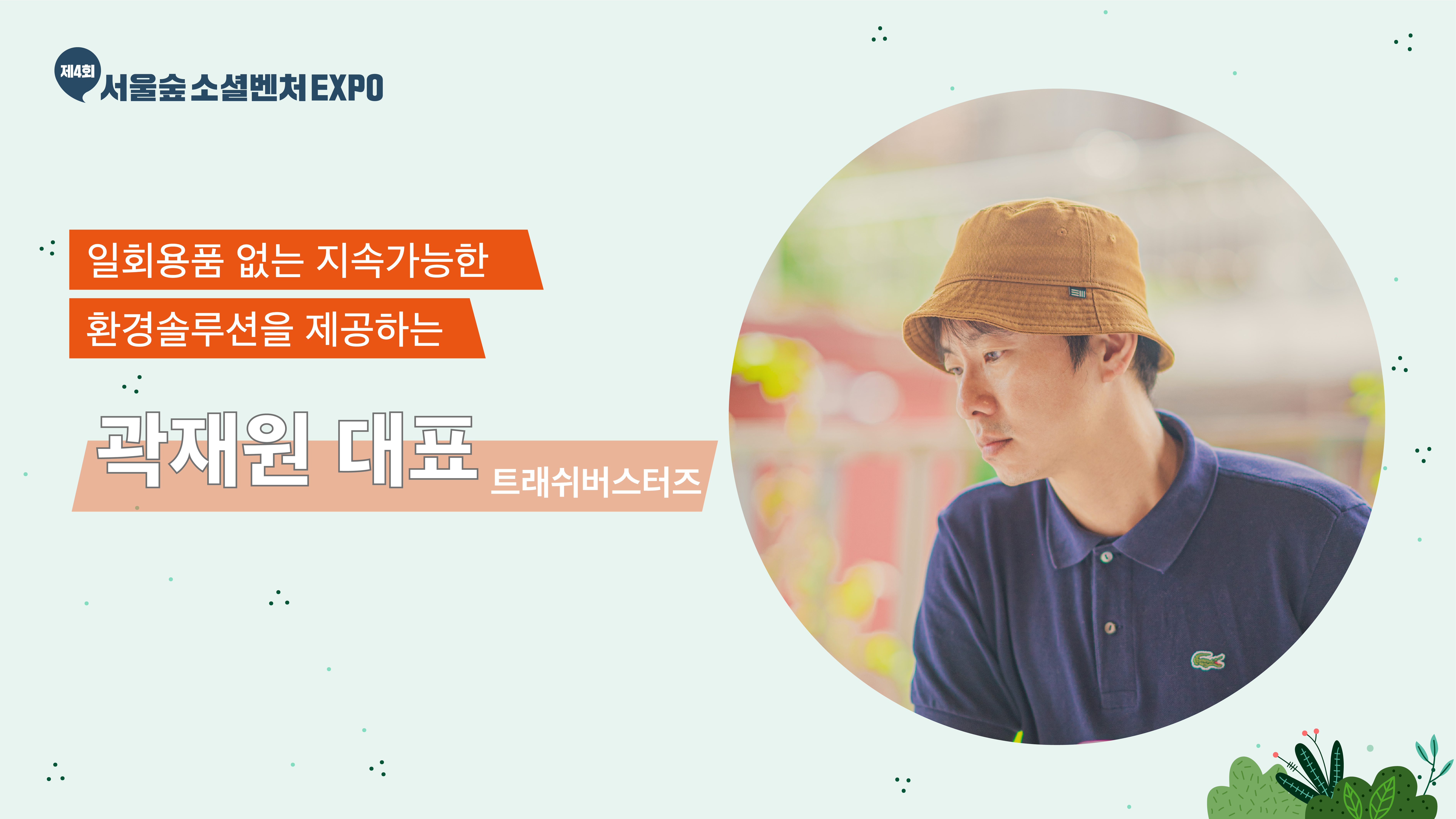 트래쉬버스터즈는 일회용품과의 전쟁을 치르기 위해 축제 기획자, 디자인 스튜디오, 브랜드 컨설턴트, 업사이클링 아티스트가 뭉쳐 설립한 소셜벤처입니다. 축제 기획자 출신인 곽재원 대표님은 매년 200~300회 행사마다 끝나고 남는 일회용품 쓰레기들을 보면서 이미 시민 대부분이 일회용품 사용을 줄이겠다는 의지가 있음에도 이를 대체할 서비스가 없기 때문에 문제 해결이 늦어지고 있다는 것을 발견했습니다.