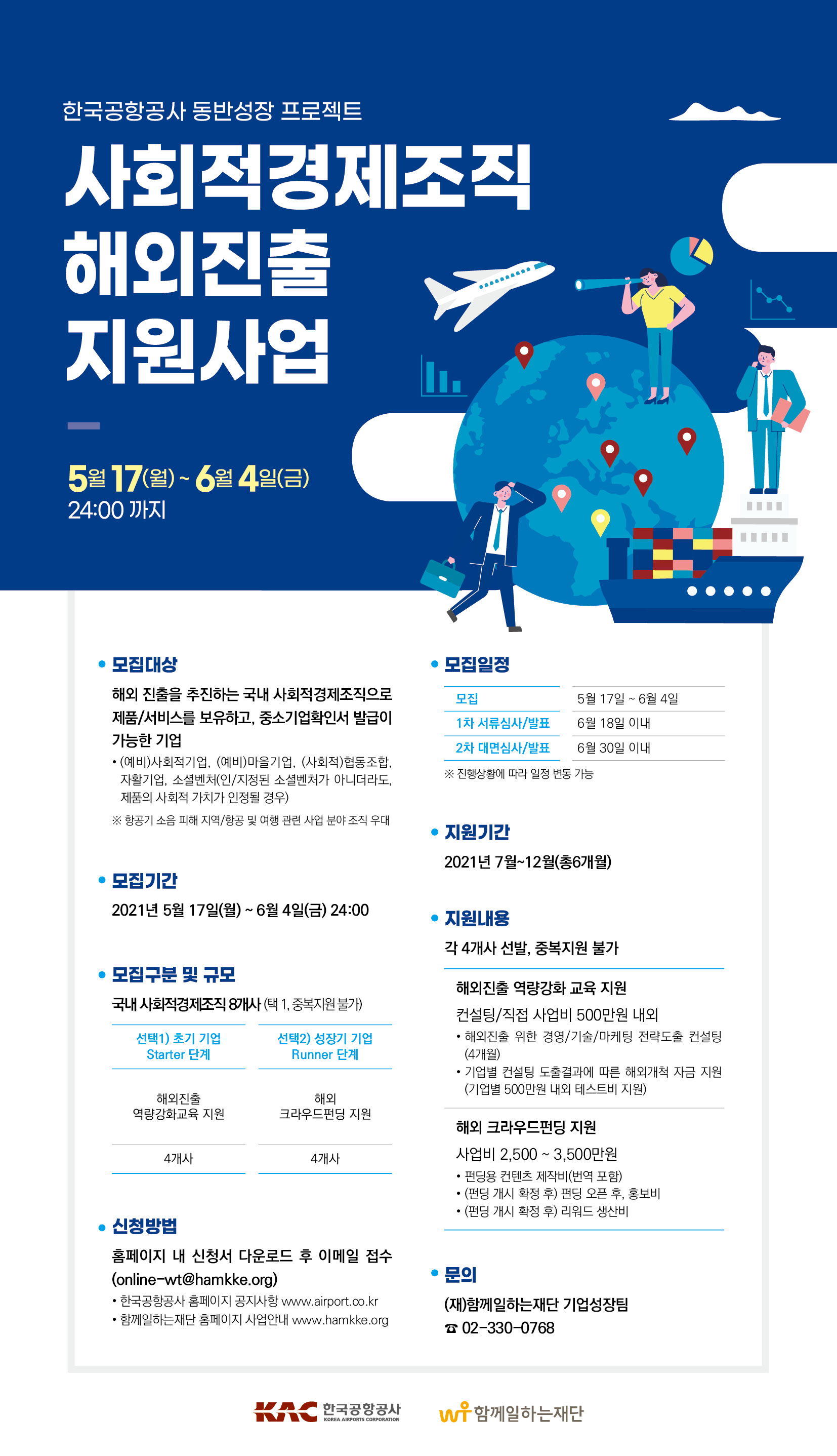 한국공항공사와 함께일하는재단 기업성장팀에서 진행하는 <사회적경제조직 해외진출 지원사업>을 소개합니다.