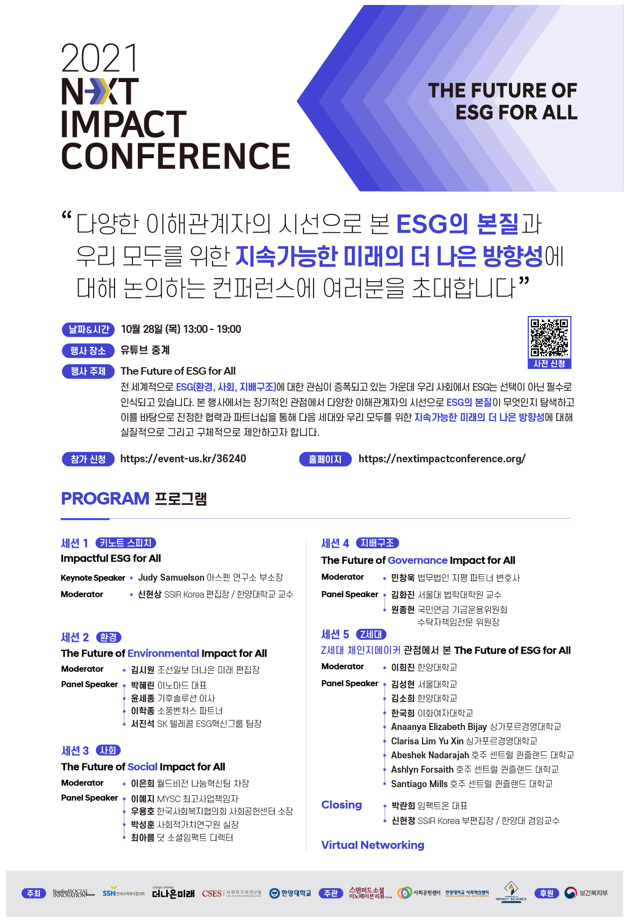 장기적 관점에서 다양한 이해관계자의 시선으로 본 ESG의 본질과 우리 모두를 위한 지속가능한 미래의 더 나은 방향성에 대해 논의하는 컨퍼런스에 여러분을 초대합니다! ⠀